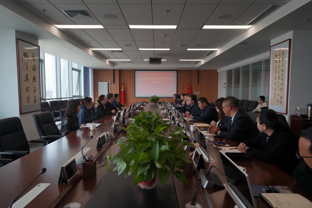 为深入贯彻落实党中央、国务院关于高校毕业生就业工作的决策部署,落实学校“访企拓岗促就业”专项行动,切实推进毕业生高质量就业,4月21日下午,经济管理学院党委书记李宏宇带队赴呼和浩特城市交通投资建设集团有限公司走访,与集团公司党委书记、董事长李峰、集团公司党委委员、副总经理王晓东、集团公司相关部门负责人、各子公司负责人开展座谈交流。学院副院长周瑜、学院团总支副书记李安琪、研究生辅导员王丽、就业办负责人王丽英参与走访。