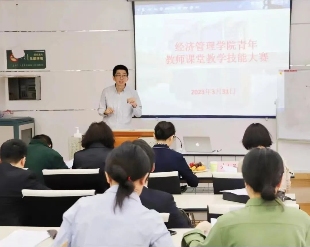 为提升我院青年教师课堂教学水平,激发青年教师钻研教学技能的积极性,培养教学岗位业务能手,3月31日下午2:30学院于经管楼309教室组织开展青年教师课堂教学技能大赛。学院党委书记李宏宇、学院工会主席吴晓华、工商管理系教师黄小葵、张启锋,经济系教师王乾宇担任了评委,工会委员赵宇亮主持了比赛。