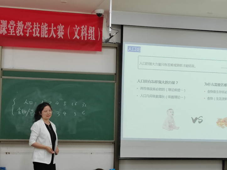 图为王丽老师参赛讲解《马尔萨斯的经济思想》