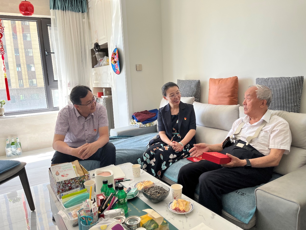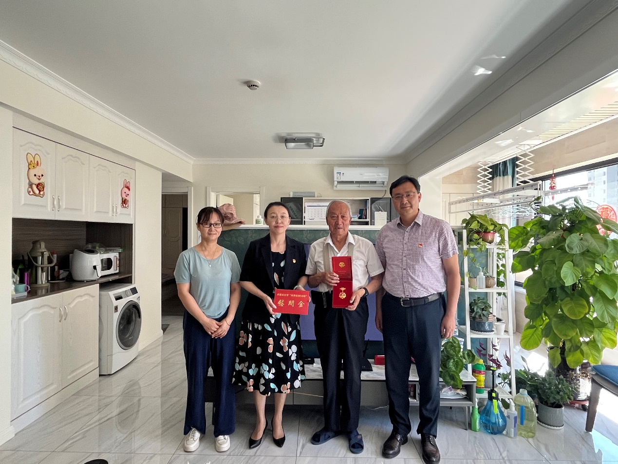 在“七一”即将到来之际,为增强老党员的荣誉感、归属感,激励广大年轻党员干部向老党员学习,6月29日上午,新葡萄官网amg党委书记李宏宇、副书记王锋正走访慰问了退休教师党员辛耕田,并为辛耕田同志颁发“光荣在党50年”纪念章。学院行政办主任秦慧丽、学院党委秘书李安琪陪同走访。