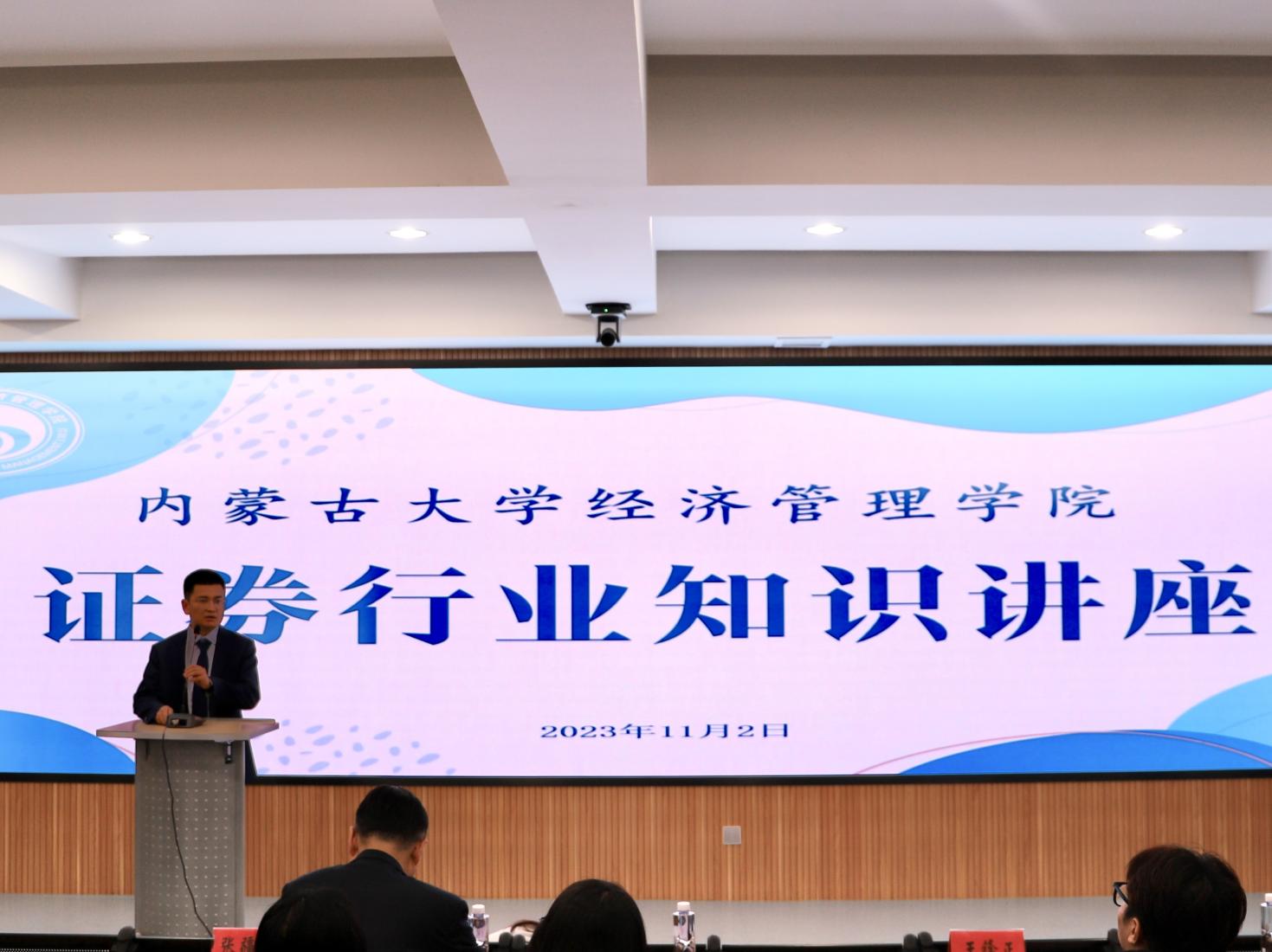 为落实《经途引航——新葡萄官网amg学生职业生涯规划与就业创业教育实施方案》,使我院学生进一步提升对证券市场的认知、加深对投资行业的理解,2023年11月2日下午,新葡萄官网amg在知行楼(经管楼)116报告厅举办了证券行业知识讲座。本次讲座邀请到了国泰君安证券股份有限公司内蒙古分公司呼和浩特营业部机构部总监王通通、零售及财富管理部产品条线负责人刘多星、HR李昕作为分享嘉宾。学院130余名学生聆听了讲座。