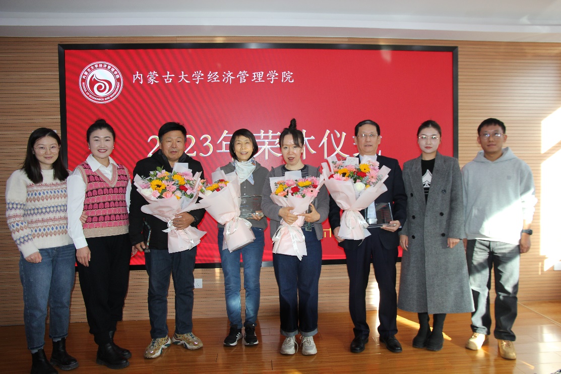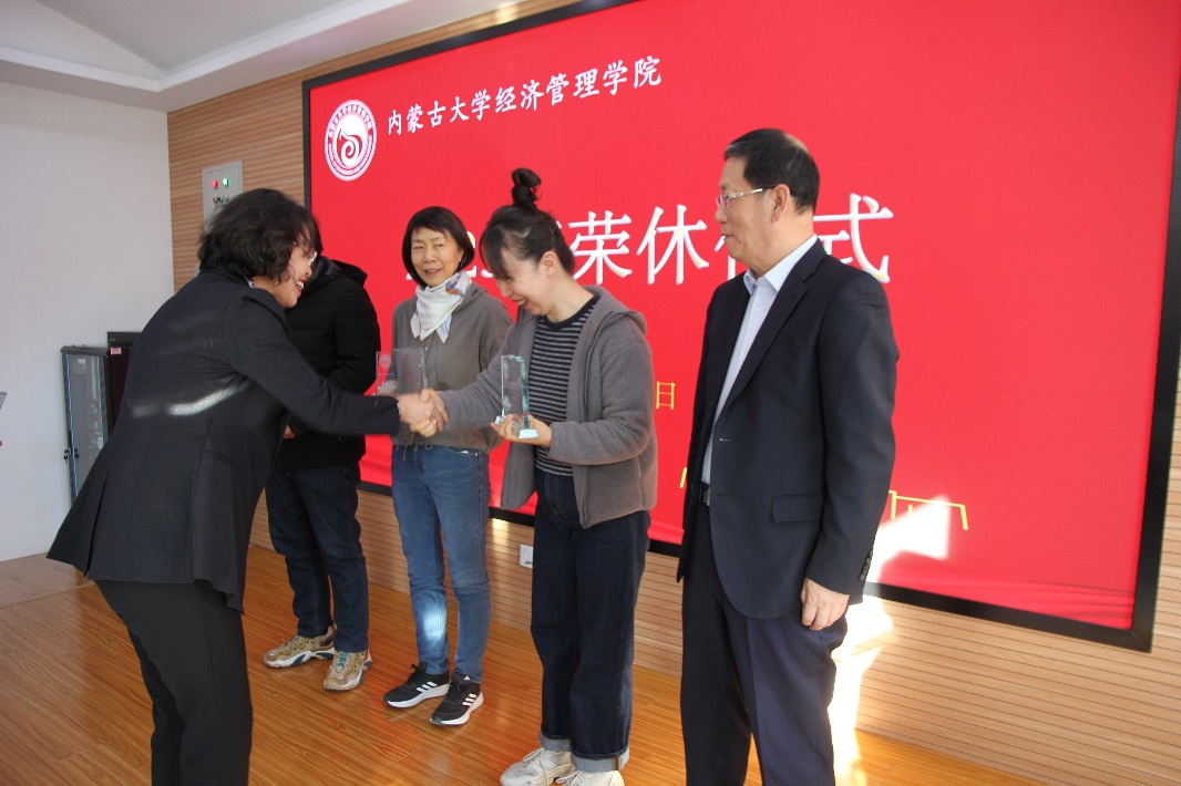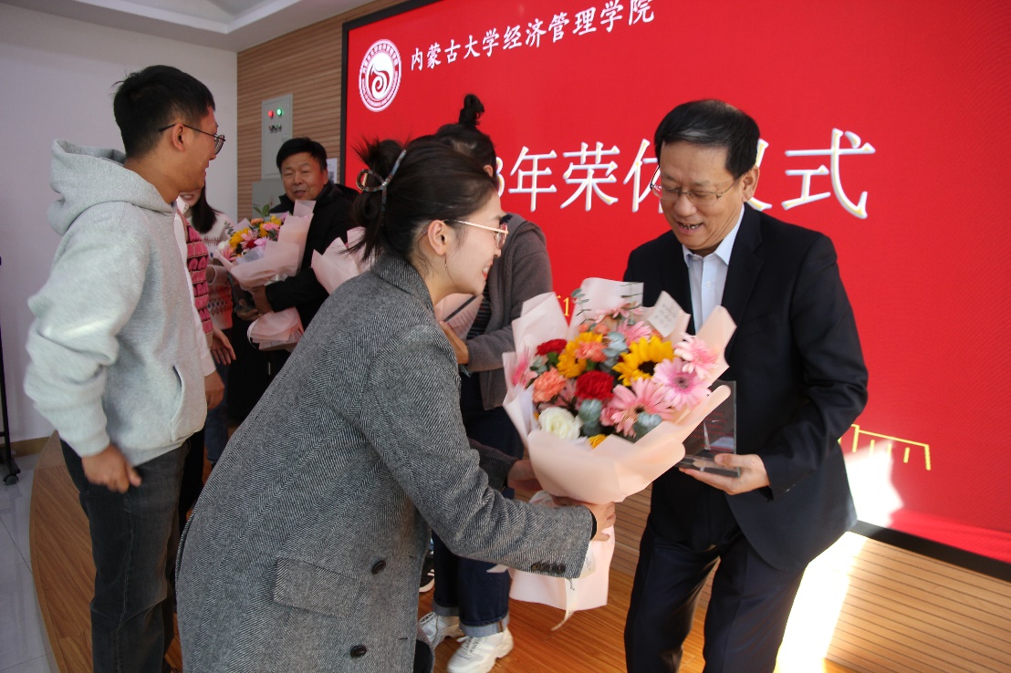 在一片热烈的掌声中,学院党委书记李宏宇向各位荣休教师颁发荣休纪念牌,年轻教师代表也为各位荣休教师代表敬献美丽的鲜花。