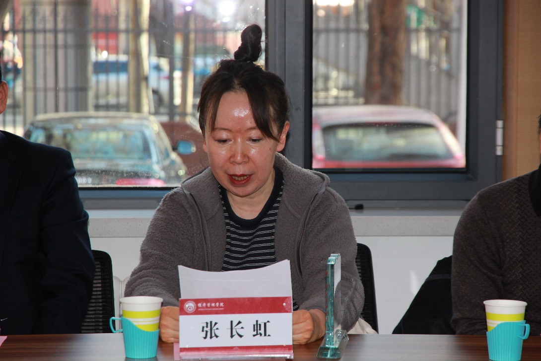 大会第四项是教师代表发言。崔新蕾、李宜洺、周莹三位系主任以及来自四个系的教师代表杨理、张启锋、秦虎、王瑾、刘斯琴老师分别发表感言。老师们一起细数了与退休教师的难忘过往,回忆了退休教师在三尺讲台的飒爽英姿,回味着退休教师的谆谆教诲。老师们倡议,所有在岗老师要以退休教师们为榜样,传承历史的接力棒,沿着他们开拓的道路,奋勇前进。