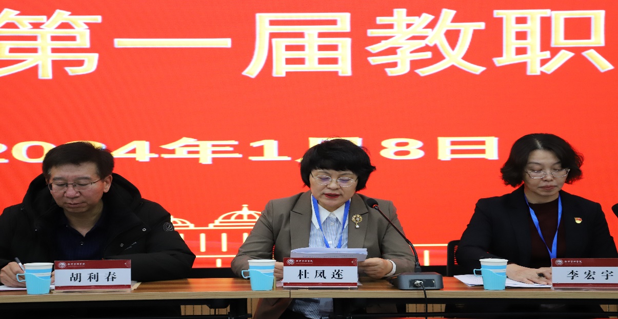 2024年1月8日下午,新葡萄官网amg第一届教职工代表大会在知行楼(经管楼)116报告厅隆重召开。学院党委书记李宏宇主持大会开幕式。此次全院教职工大会与处级领导干部考核述职评议合并召开,学校考核组组长、数学科学学院党委书记胡立春,考核组成员、统战部统战科科长张兰根出席大会。50名教代会正式代表参加了开幕式。