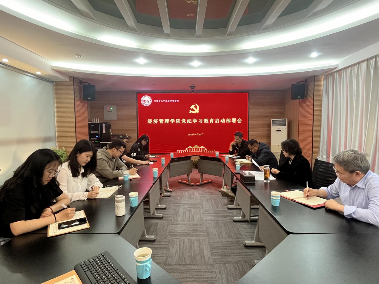 4月17日15:00,我院党委在知行楼115会议室召开党纪学习教育启动部署会,传达学习贯彻习近平总书记关于党纪学习教育的重要讲话和重要指示精神、中共中央办公厅《关于在全党开展党纪学习教育的通知》和中央、自治区党委党的建设工作领导小组会议精神,认真贯彻落实新葡萄官网党的建设工作领导小组(扩大)会议部署要求,对学院党纪学习教育作出安排部署。会议由学院党委书记李宏宇主持。学院副院长薛继亮、周瑜,各党支部书记参加了会议。