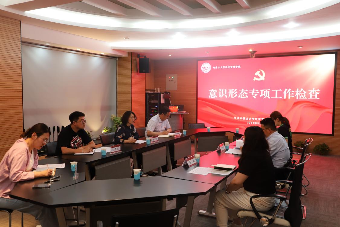 2024年5月24日下午4:30,在知行楼(经管楼)115会议室,学校意识形态工作检查组到我院开展意识形态工作专项检查。学校党委宣传部副部长吴栓虎、党委巡查办公室巡查科科长武士毓、党委宣传部意识形态与文化建设科副科长李璐组成的检查组,听取了我院党委书记李宏宇的工作汇报,我院党委副书记兼副院长王锋正及学院意识形态与网络舆情工作组成员代表参加了汇报会。
