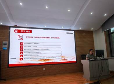 纪律是党的生命线,解决大党独有难题,必须旗帜鲜明加强党的纪律建设。曹以伦书记全面讲解了新修订的《中国共产党纪律处分条例》,强调了新修订的《条例》对于加强党的纪律建设、规范党员行为、维护党的团结统一具有重要意义,他要求支部全体党员要认真学习、深刻领会《条例》的精神实质,做到学纪、知纪、明纪、守纪。