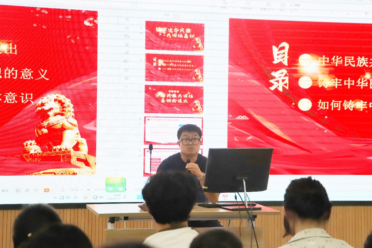 5月31日,学院团委副书记兼学工办副主任闫东祺以《铸牢中华民族共同体意识》为题,引领学员们深入了解了我国悠久的民族历史,深刻领会和把握铸牢中华民族共同体意识的重大意义,坚决贯彻落实党和国家的民族工作基本方针,牢固树立正确的中华民族历史观,推进新时代党的民族工作高质量发展。