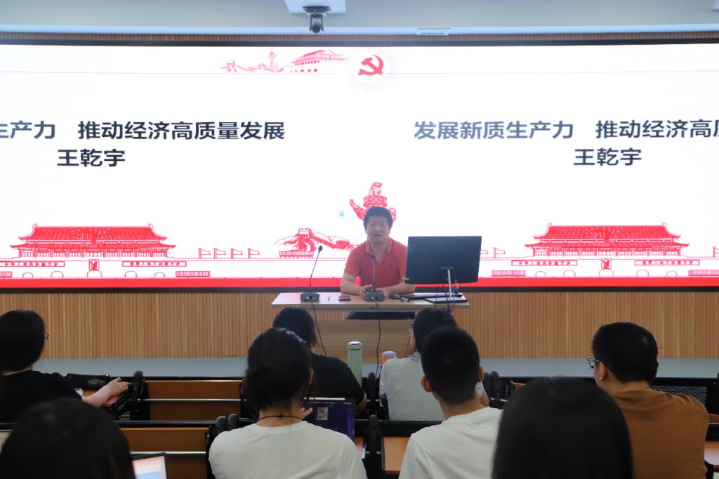 5月28日,学院经济学系教师王乾宇以《发展新质生产力 推动经济高质量发展》为题,带领学员们学习新质生产力的基本内涵、主要特征、重大意义,从六个方面介绍了高质量发展中新质生产力的发展途径,同时向学员们强调了发展新质生产力是实现高质量发展的重要引擎,鼓励学员们要在发展新质生产力中展现更大作为。