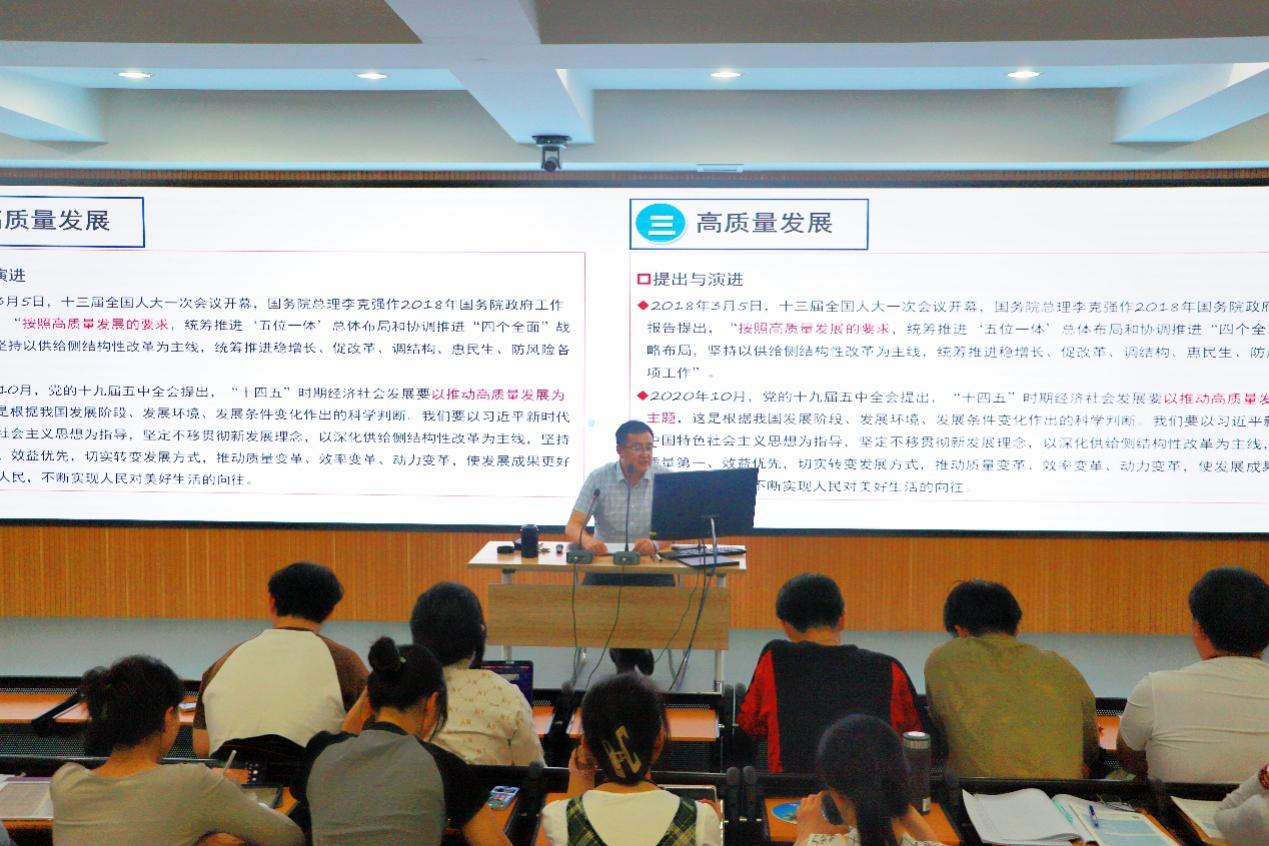 5月27日,学院党委副书记、副院长王锋正以《中国式现代化与经济高质量发展》为题,结合我院学科专业特点,从党的二十大精神、中国式现代化以及经济高质量发展三个方面进行了详细阐述,带领学员们进一步深入理解习近平经济思想。
