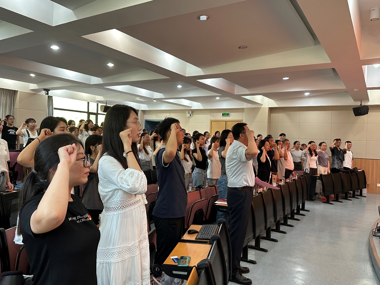 为庆祝中国共产党成立103周年,7月1日下午,新葡萄官网amg党委在知行楼116教室举办了庆“七·一”新党员入党宣誓仪式。学院党委书记李宏宇,学院党委副书记、副院长王锋正、党委委员、副院长周瑜,党委委员、经济学系系主任崔新蕾,金融系主任周莹,教工一支部书记恩和,教工二支部王瑾出席仪式,36名新发展党员和师生党员代表100余人参加了仪式,仪式由王锋正主持。