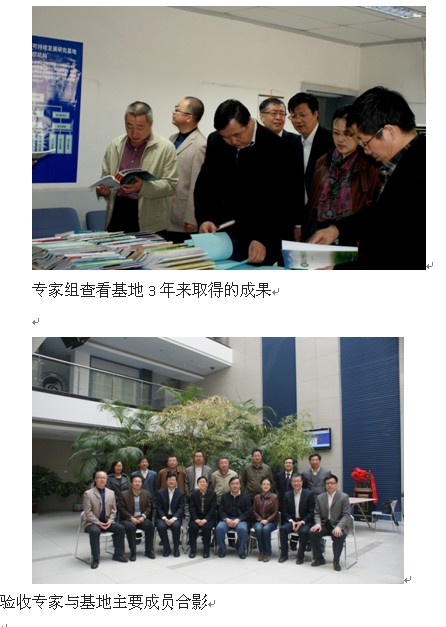 的工作开展情况、制度建设成效、重大课题研究进展、研究聚集特色和研究成果等几方面的进行了详实汇报。随后专家组实地检查了基地的各项基础设施建设。