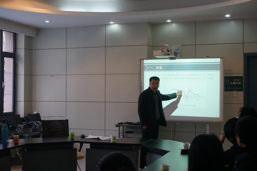 张志明副教授在报告中不仅从理论层面探讨全球价值链分工对金融危机期间中国贸易增速波动的影响,更借助双边贸易增加值分解框架与WIOD数据库所提供的国际投入产出表,在对总出口增速波动完全解构的基础上,从内部结构视角着重探讨全球价值链与非全球价值链贸易及全球价值链不同嵌入方式变动对危机期间中国出口增速波动的贡献情况展开详细的论述,并提出了我国要重点构建技术密集型制造业的国内价值链,全面推进劳动、资本密集型制造业和服务业国内价值链构建,继续改善初级产业的国际价值链嵌入程度和嵌入方式等可行性建议。