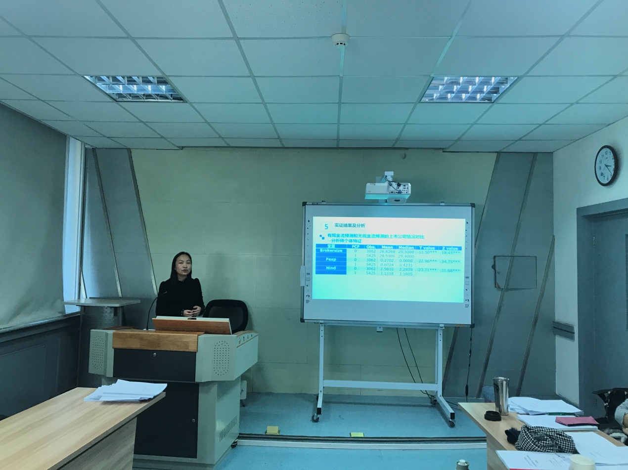 2018年1月8日下午,我院邀请中央财经大学会计学院王菊仙博士作了题为“公司治理、经营风险与分析师现金流预测”的学术报告,这是我院2018年度举行的首场国内学者学术报告会。会计系主任颉茂华教授主持会议,米莉、郭金凤、宋云玲、周冉、袁学英等各位老师参会。