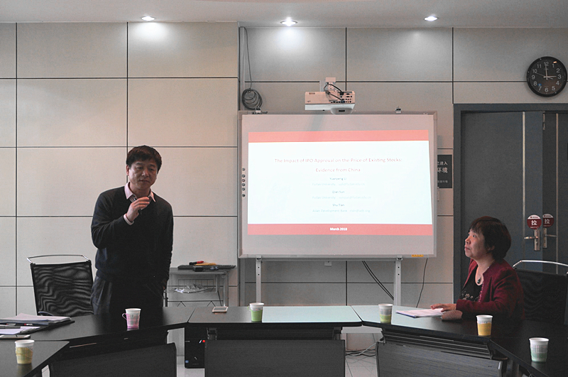 2018年4月25日下午,我院在经管楼115会议室举办了2018年度第三场国际学者学术报告会,会议邀请复旦大学特聘教授孙谦老师作了题为《The impact of IPO approval on the price of existing stocks:Evidence from China》的报告。会议由我院郭金凤副教授主持,相关专业师生参加了会议。