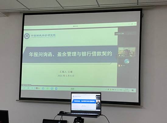 2021年1月6日下午,我院举办第一百零四期“内大经管﹒知行讲坛”,邀请中国财政科学研究院王瑾博士、上海财经大学曹雅楠博士分别作了题为“年报问询函、盈余管理与银行借款契约”、“投资项目资本预算”的线上学术报告,会议由我院颉茂华教授主持,学院其他相关专业的老师同学参加了会议。